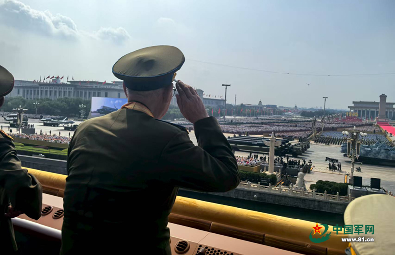 战鹰翱啸,剑指苍穹。八十载光阴倏忽而过,如今山河安宁,换了人间!天安门城楼上,高厚福保持敬礼姿势。清风徐徐,吹动他鬓角的白发,也拂过长安街上飘扬的五星红旗。