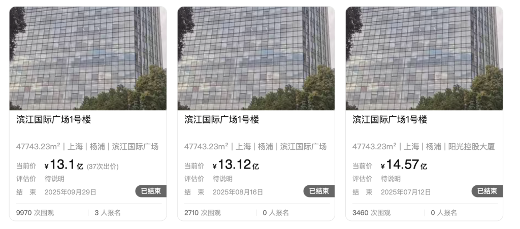 阳光城集团昔日上海总部大楼经历2年5次拍卖,以13.1亿元成交